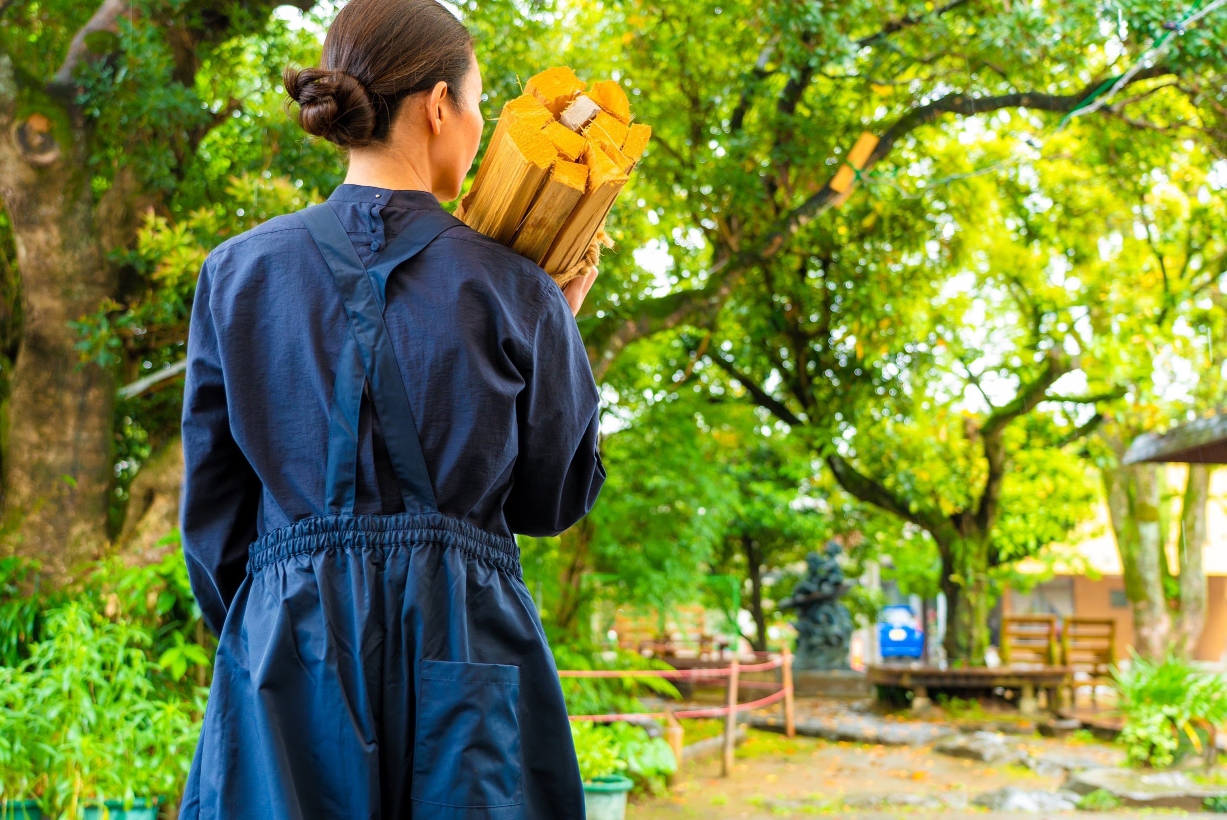 モンペイ姿の女性が、アウトドアで自由な冒険を楽しむ。自然と調和したスタイルで魅力的なアウトドアライフを!